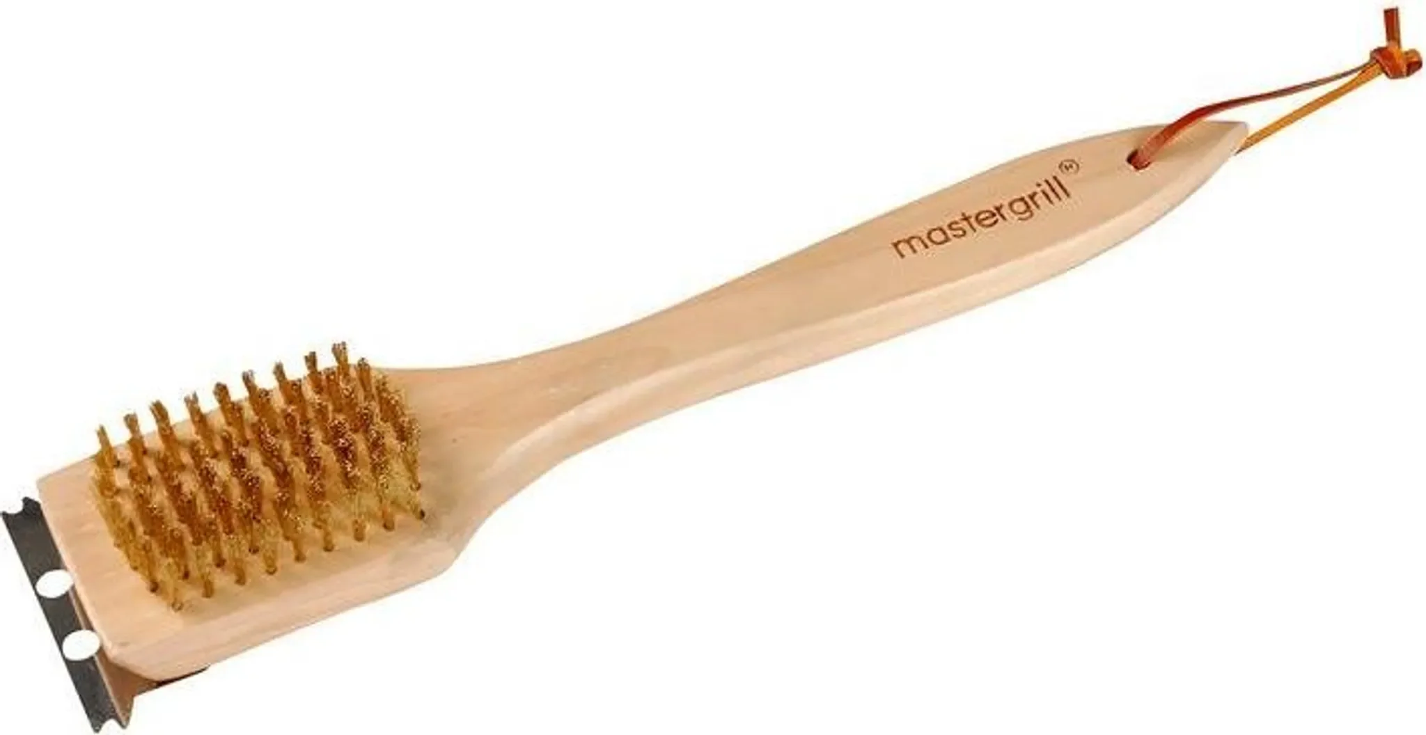 Die Kombination aus widerstandsfähigen Messingborsten und integriertem Kratzer ermöglicht eine effektive Reinigung auch stark verschmutzter Stellen. Der ergonomische Holzgriff liegt sicher in der Hand und sorgt für eine komfortable Handhabung beim Grillen.