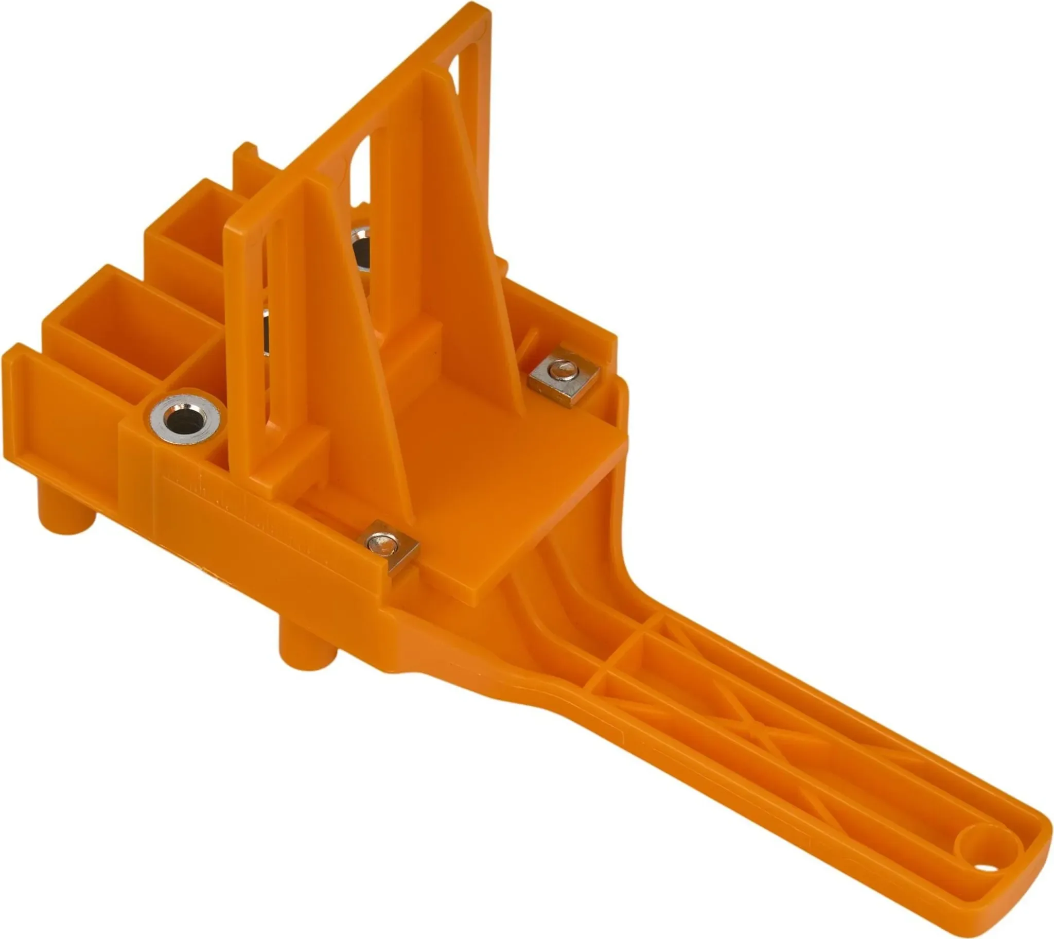 Die Schablone ermöglicht das exakte Bohren von Löchern für E- und L-Eckverbindungen mit 6-, 8- oder 10-mm-Dübeln. Zwei Werkstücke können gleichzeitig gebohrt werden, was passgenaue Ergebnisse ohne sichtbare Spuren an den Verbindungsteilen gewährleistet.