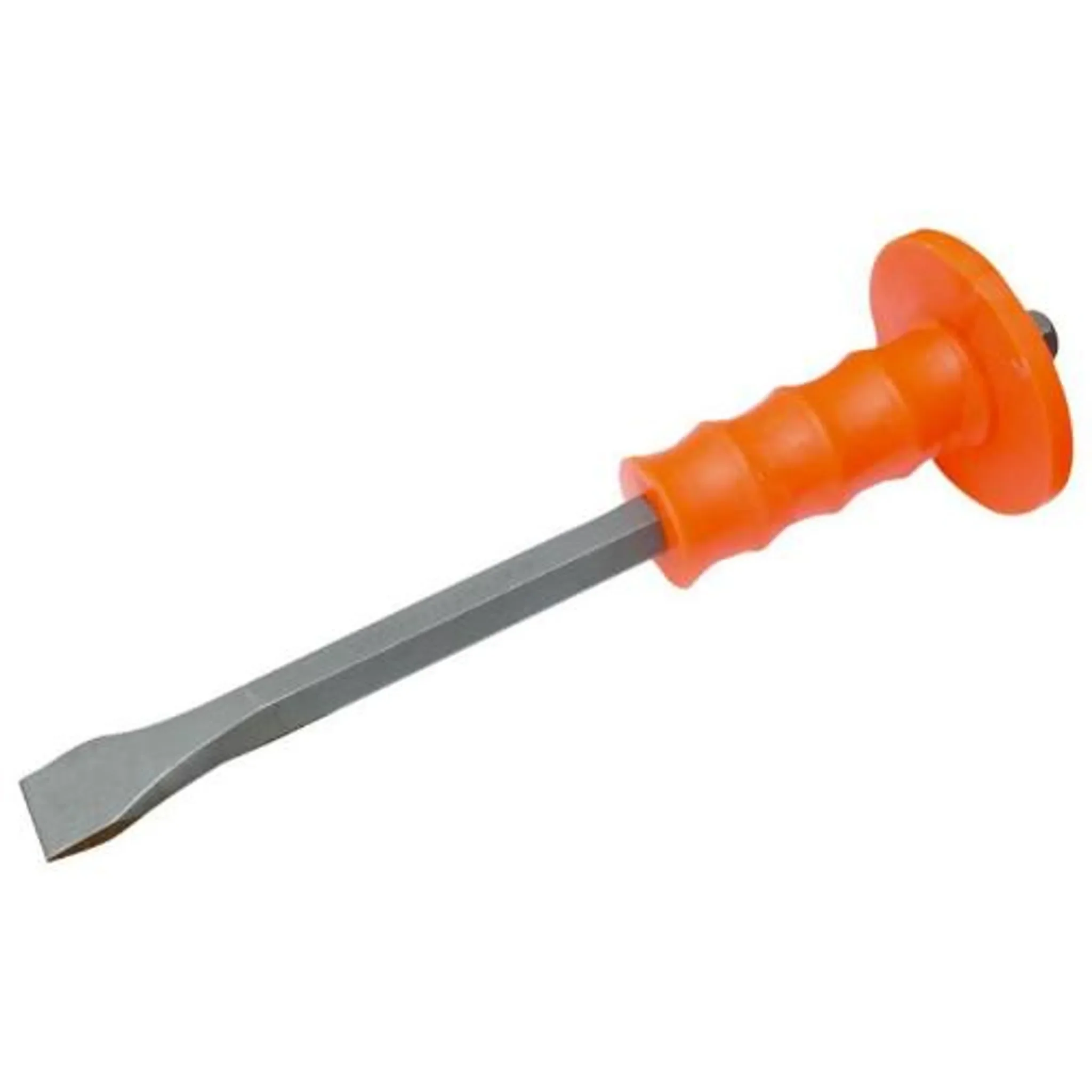 Gefertigt aus gehärtetem Chrom-Vanadium-Stahl überzeugt der Meißel durch hohe Verschleißfestigkeit und lange Lebensdauer. Der integrierte PVC-Handschutz erhöht die Sicherheit und den Komfort bei kraftintensiven Einsätzen.