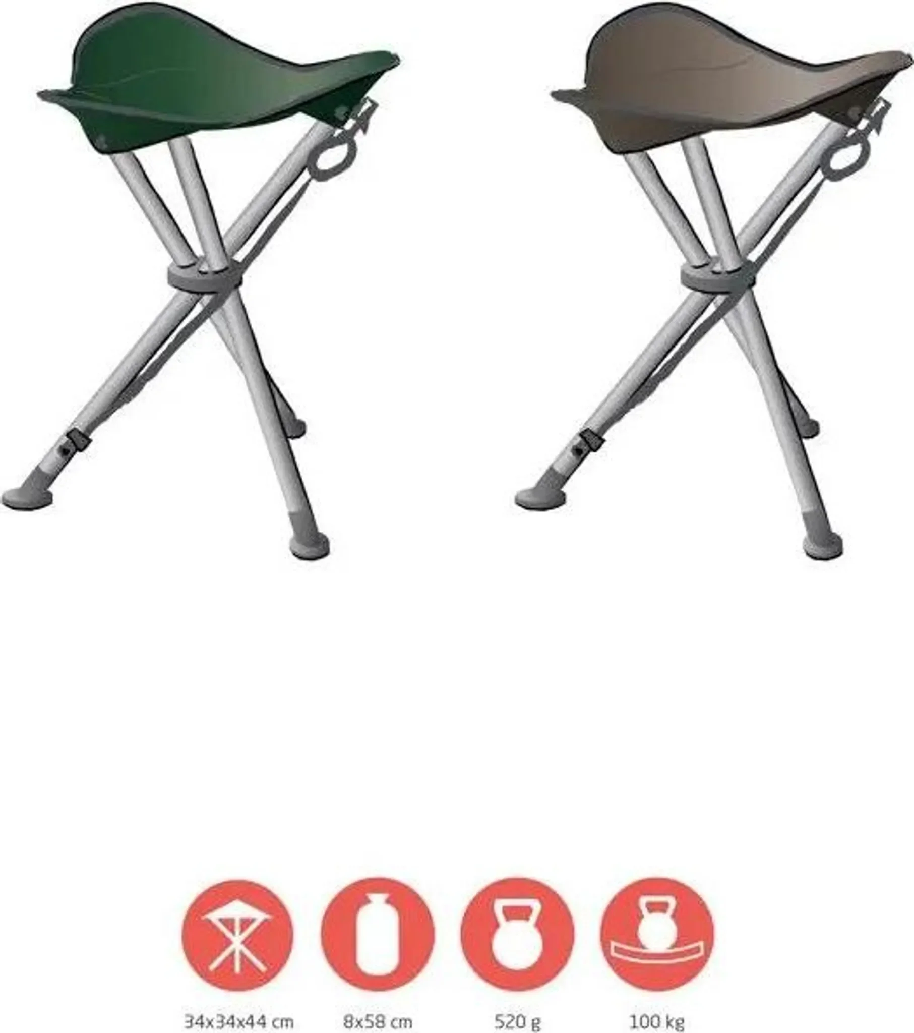 Highlights: Sehr geringes Gewicht, hohe Tragfähigkeit, sicherer Stand durch Dreibein-Konstruktion und in Sekunden zusammengefaltet und transportbereit.