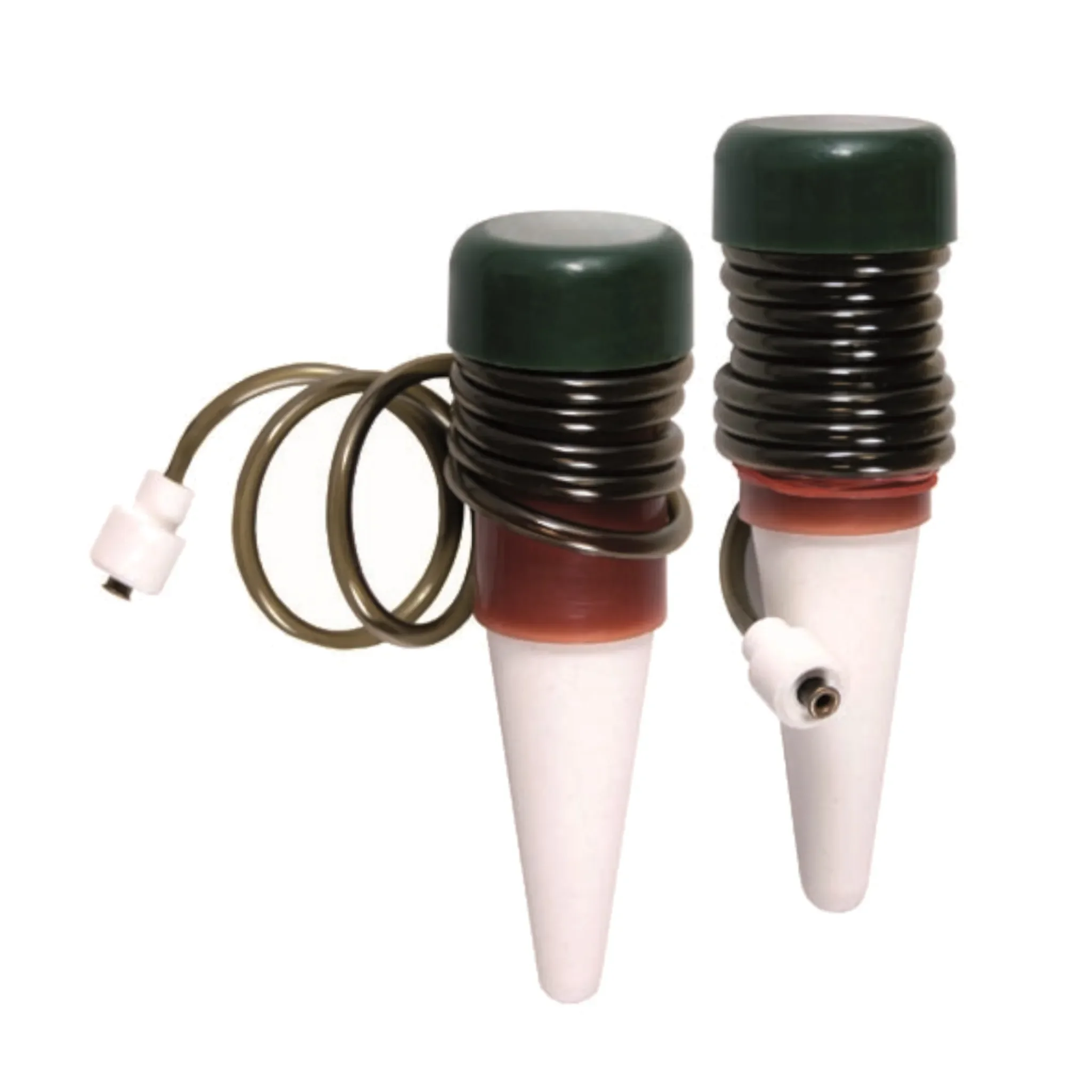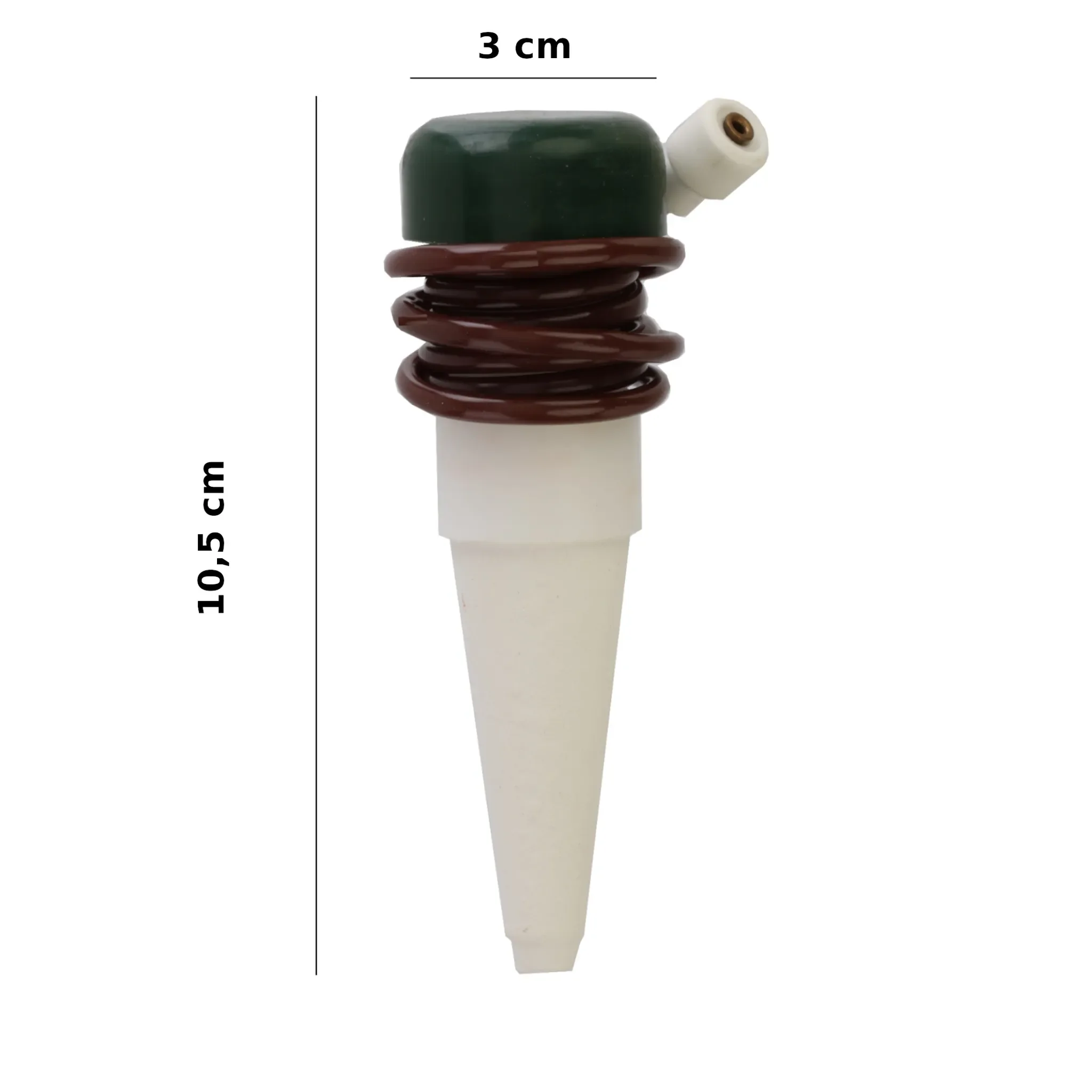 Die Kombination aus Keramikkegel und flexiblem Schlauch sorgt für eine gleichmäßige, langsame Wasserabgabe. Einfach den Keramikkegel in die Erde stecken, den Schlauch mit einer Wasserflasche verbinden – schon übernehmen die Spender zuverlässig die Bewässerung Ihrer Pflanzen. Ideal für Urlaube, Wochenenden oder den stressfreien Alltag.